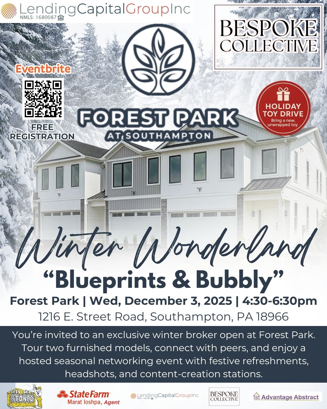 Explore Forest Park at Southampton Model Homes at our Winter Wonderland "Bubbly & Blueprints" Broker Open
