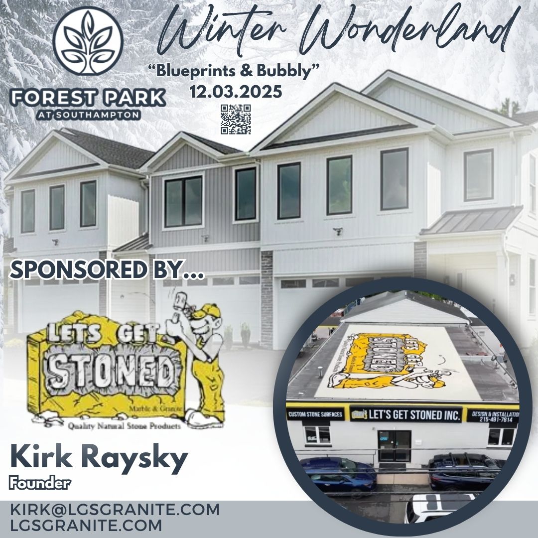 Step into a winter wonderland of style, design, and connection at Forest Park at Southampton for “Blueprints & Bubbly.” Experience the warmth of the season while touring two beautifully furnished model homes that showcase modern farmhouse living at its finest featuring three bedrooms, 2.5 to 3.5 baths, two-car garages, 9-foot ceilings, large windows, optional finished lower levels, outdoor decks, and generous owner’s suites.
