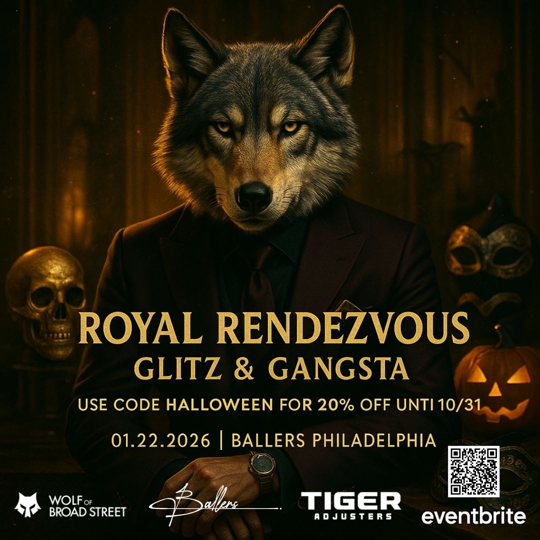 Join Wolf of Broad Street, Ballers Philadelphia, and Tiger Adjusters for the Royal Rendezvous Real Estate Networking Party 2026, happening Thursday, January 22, 2026, at Ballers Philadelphia. Step into a world of cinematic glamour, bold style, and powerhouse networking as 300+ of the region’s top real estate professionals, lenders, developers, and entrepreneurs come together for a night that defines elite connection.