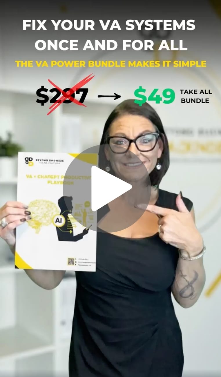 Beyond Business Virtual Assistants is offering a limited‑time deal on their VA Management System, a bundle of guides designed to train AI to write in your voice, show your virtual assistant exactly what to do and triple your output without burnout. The package covers using ChatGPT effectively, integrating AI with VA workflows, unlocking efficiency and growth, and includes a bonus playbook for voice training. Buyers receive instant downloads of actionable SOPs and proven AI + VA workflows, allowing your VA to produce on‑brand content with simple, repeatable prompts. Normally valued at $299, the bundle is available for $49 for a short time. If saving 10 to 15 hours per week and tripling content output appeals to you, visit https://go.beyondbizva.com/get-guides to get started.