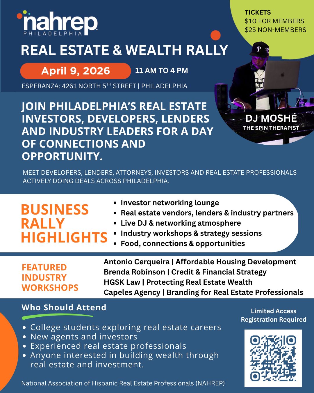 Wolf of Broad Street is proud to support NAHREP Philly and help spread the word about their upcoming Real Estate & Wealth Rally on Thursday, April 9, 2026 from 11 AM to 4 PM at Esperanza in Philadelphia. This is shaping up to be a great event for anyone in and around real estate who wants to make new connections, learn from experienced professionals, and be in the room with people actively doing deals across the city.